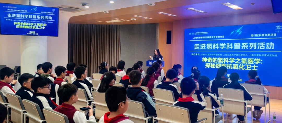 152025.11氢中心科普活动第118场 | 探秘细胞抗氧化卫士—— 走进氢科学科普系列活动顺利举行为激发初中生对生命科学的探索热情,2025 年11 月 14 日,上海交大氢科学科普基地、材料科学与工程学院、上海市教育系统关心下一代工作委员会丁文江工作室,联合组织了"神奇的氢科学之氢医学——探秘细胞抗氧化卫士" 科普活动,通过沉浸式解锁 “细胞抗氧化卫士” 的奥秘,为上海交大附属第二中学的预初学子们开启了一段奇妙的科学探索之旅。 活动特邀上海交通大学氢科学中心王尉荧博士带...
